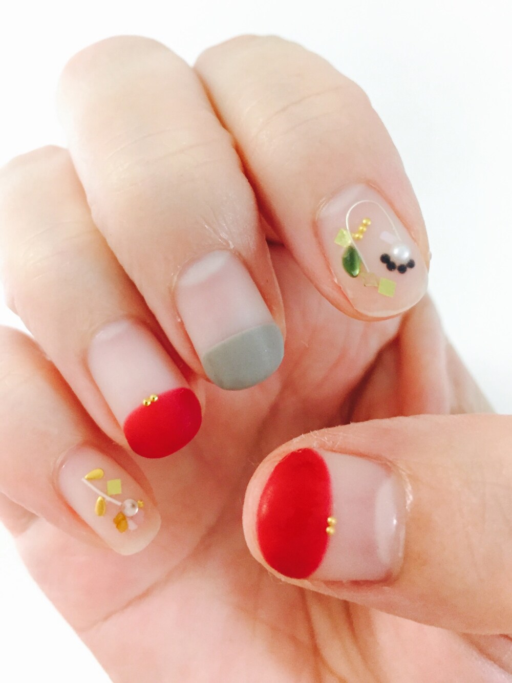 右手 左右でお花が違います💐 赤を入れたかった! マット仕上げ