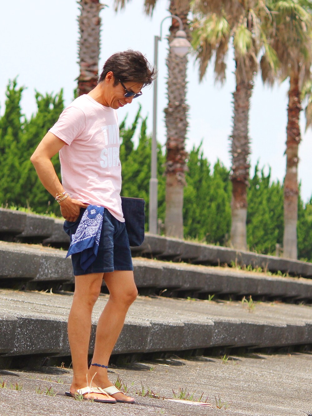 BAYFLOWのネイビーショーパンSサイズ 丈感&サイズ感が絶妙です💙 ピンクTにGOLDサンダルあわせてみました(笑)