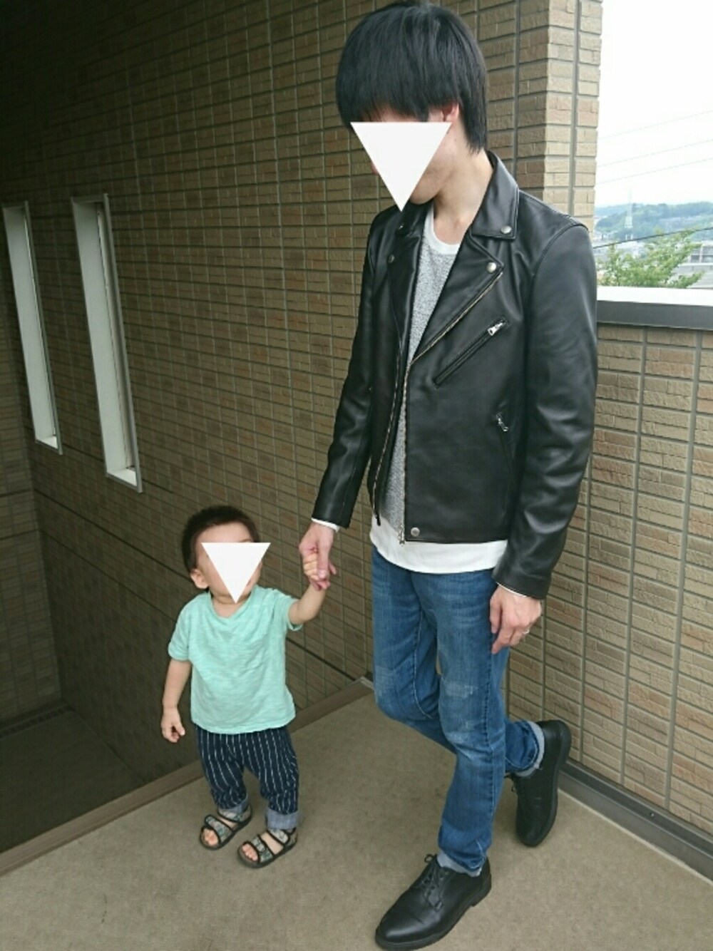 おはようございます☀ 今週も先週末に撮りためたコーデをお送りいたします! いつもコーデの写真は妻に撮ってもらっているんですが、このショットは個人的にすごくお気に入りなんです!! 顔は隠しちゃってますが、二人満面の笑顔で笑い合ってる瞬間を収めたものなんです。 親バカですがあまりにも長男が可愛かったんで、顔を公開で投稿しようか迷いましたがそれはまた別の機会に(笑) コーデは今季2度目のダブルライダースです♪ シングルライダースはLui'sのものを持っているんですが、ダブルは持ってなかったのでどのブランドを買おうか色々検討してました。 結局はお手頃なSTUDIOUSに落ち着きましたが、シングルとはまた違った印象になるのでかなりお気に入りです! ライダースはその名の通り、元々バイカーの為のジャケットでダブルライダースは更に厳つさをクローズアップしたテイストですが、最近のものは極めてシンプルな作りになっているので僕みたいなシンプルコーデが好きな人にも是非着てほしいアイテムです★ 最近ではかなりお手頃価格なものもあるようなので、みなさんもチャレンジしてみてはいかがですか? 今日も一日、Take it easy~