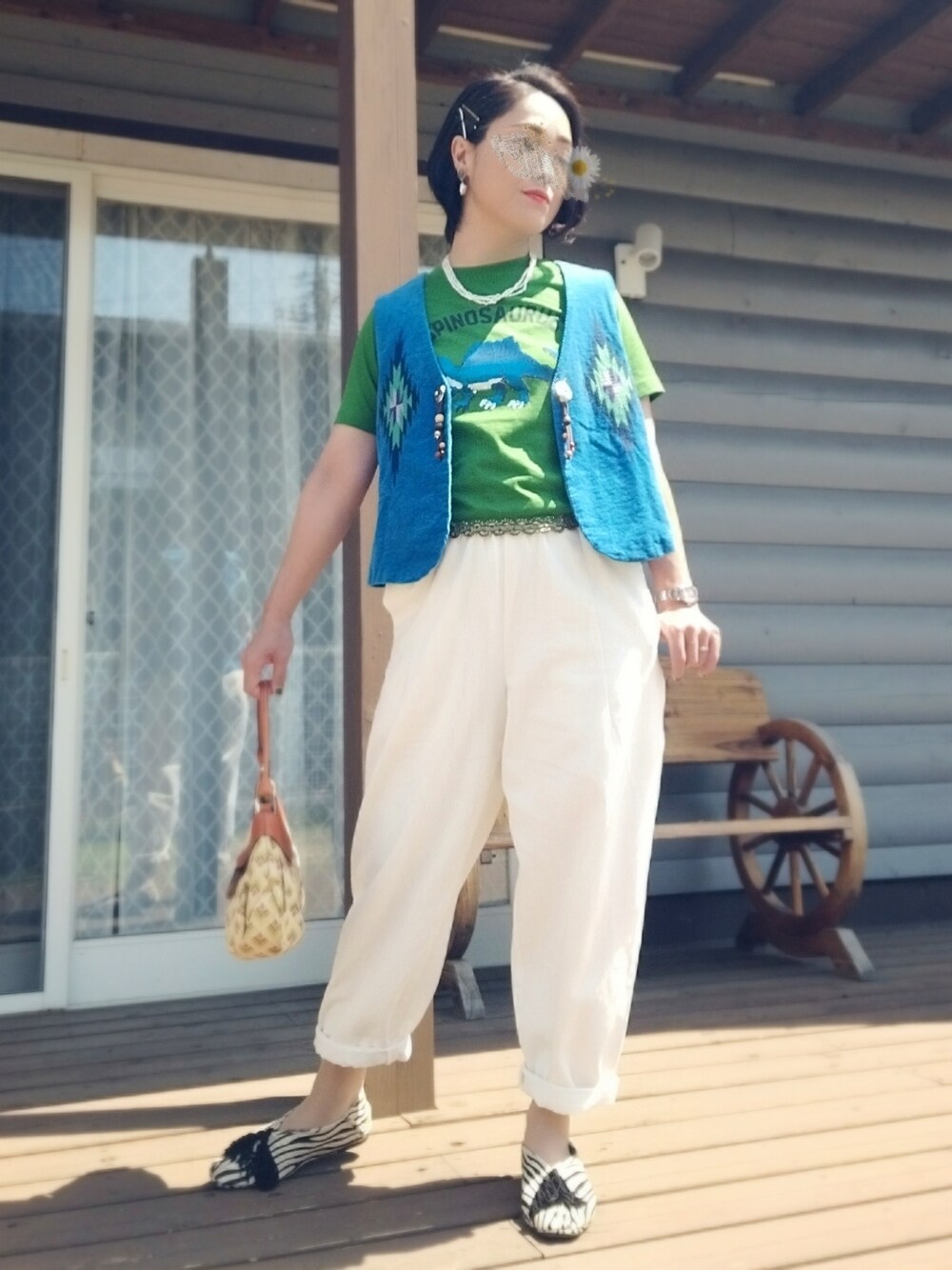 「#白パンツの日」 GUでかわいいTシャツ発見!これ男の子用。スパンコールの恐竜で、撫でる向きを変えると色が変わるのです。小学生男子だったら、授業中、延々遊んじゃうヤツ。 丈が長めだったので、短くしてチロリアンテープを縫い付けてみました。 今日は旦那さんと映画。ファンタスティックビーストを観に行ったんだけど…あれ?ジョニデ降板してたの知らなかった。がっかり。