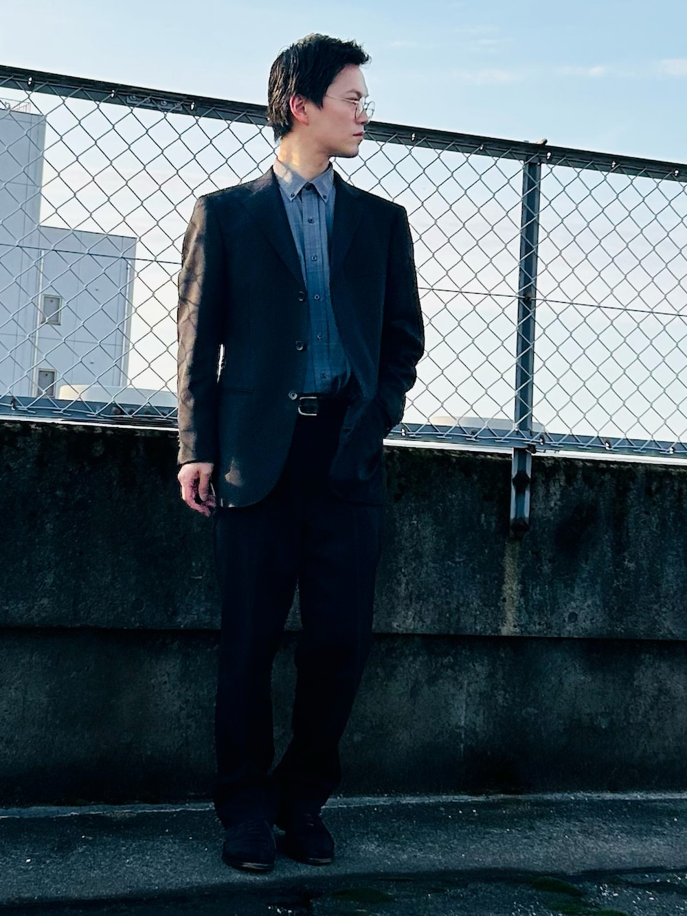 15年前の20歳の時 買ってもらった成人式用スーツを カジュアルダウンして着用したコーデ ゆったりしてて 若干、古畑任三郎風に匂わせたスーツ 今の気分にピッタリ♪