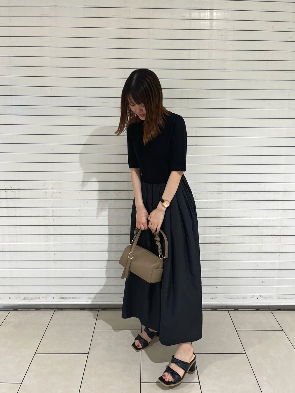 こんにちは。TechichiなんばCITY店のシンです。🐶 今回はTechichiのワンピースをご紹介します ワンピースのトップスの部分はニット素材なのでタイトめのシルエットを出しくれます✽ スカートの部分はギャザーが入っており、ハリ感のある素材になっている為、デザインがシンプルでスタイリングしやすく、日常使いから綺麗めにも幅広く使える万能アイテムです🖤🎼