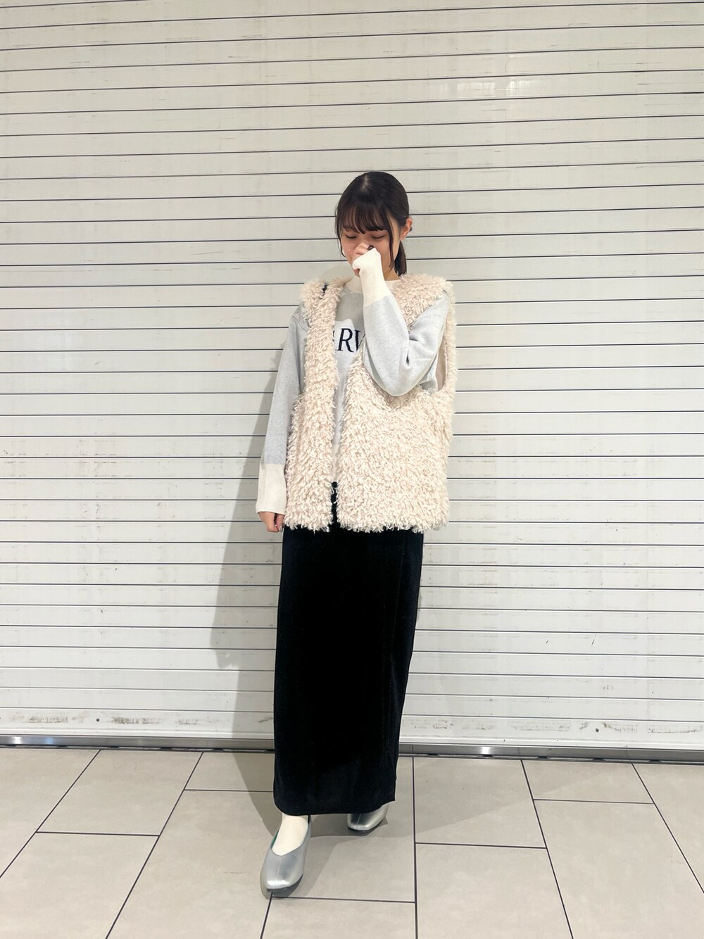 こんにちは。なんばCITY店のシンです!🐶 Lugnoncureでトレンドアイテムでのコーデを組んでみました🍂 outer_人気のボア!脇腹の空き具合がゆったりしている為ニット袖も通しやすくなっております!ポケットもついている為、使い勝手も🙆♀️ knit_もちもち感触のニット!ニット特有の嫌なチクチク感が全く無いので敏感な方にもおすすめです♪ skirt_写真では伝わりにくいのが残念ですが しっかりとラメが入っているデザインの為コーディネートにメリハリがつけれます☺︎
