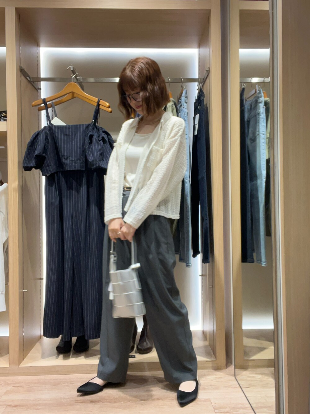 こんにちは!ご覧いただきありがとうございます。 京都ポルタ店のシンです!🐶 お久しぶりの更新です🥲💦 本日は夏本番が過ぎ秋先まで使えるルノンキュールのコーデを紹介します! tops:細かい透かし編みのシャツはまだ残暑が残る今からでも使える羽織りもの! 細かい透かし編みの為、肌の露出も少なく使えます!✨ pants:タックのパンツ!サイズがMとLサイズからお選び頂きます!カチッとし過ぎないのでカジュアルな着こなしでも使って頂けます!🍂