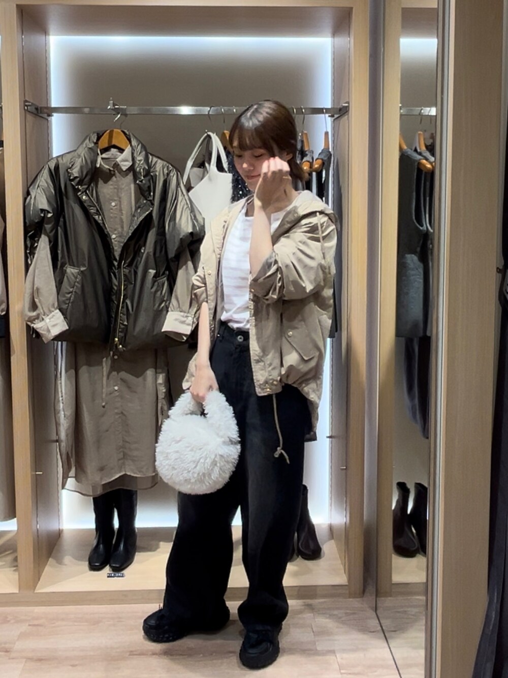 ご覧いただきありがとうございます! 京都ポルタ店のシンです!🐶 着用のマウンテンパーカー、毎年当店では人気のアイテムです! お尻までしっかり隠れる着丈に、撥水加工と花粉防止機能までついています!✨ このシーズンだけではなく、春先や梅雨にも大活躍! 是非、店頭でご覧ください♪