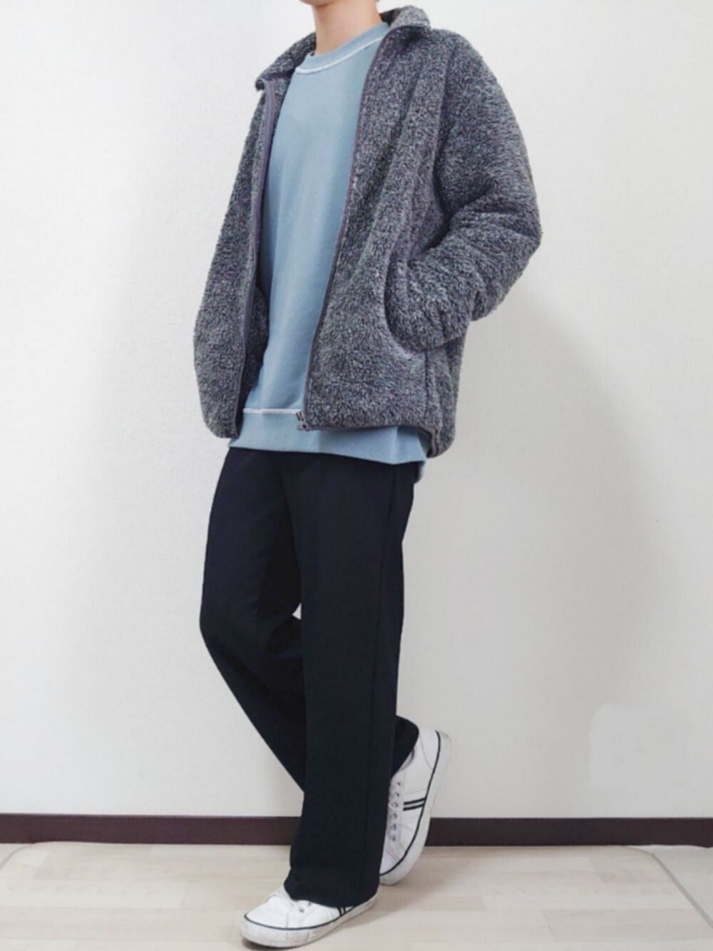 【コーデ日記】 いつも見てくださりありがとうございます 今日はカジュアルコーデ モノトーン+ミント🍀 ボアとスラックスでカジュアルなコーデにしました ミントのステッチスウェットと白スニーカーで 春らしい爽やかさを意識しました✌️ ぜひ参考にしてみてください!! 《お知らせ》 最近Instagramをはじめました! 僕のInstagramではWEARに載せたコーデのまとめ等を投稿しています 僕自身、学生でお金にも限りがあります😥 そんな中で自分が買った服の着回し投稿などもしているので 学生さんには参考になってもらえるかなと思います。 もし良かったらいいねやフォロー等よろしくお願いします🙇♂️