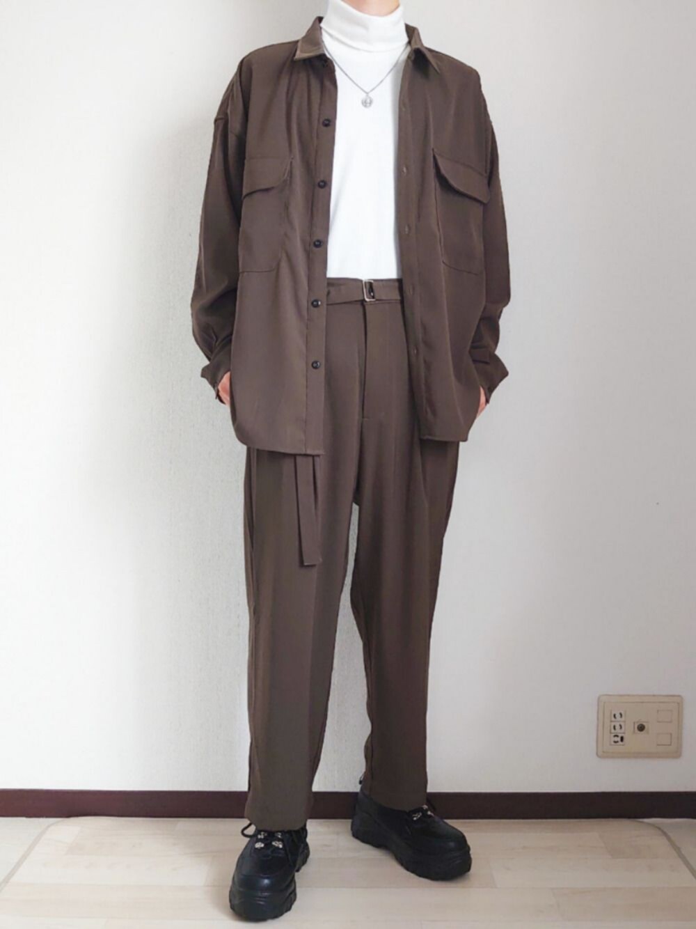 ひろきのシャツ/ブラウス「【セットアップ】ポリトロツイルCPOビッグシルエットシャツジャケット&ベルト付きワイドパンツ」を使ったコーディネート