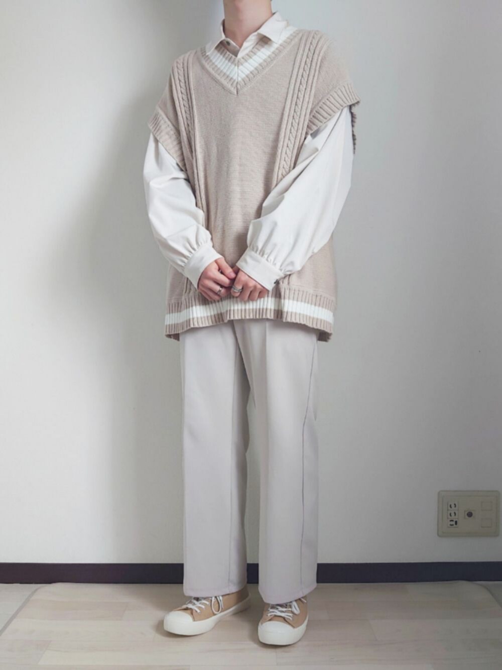 【コーデ日記】 いつも見てくださりありがとうございます 今日はワントーンコーデ ベージュ系を主体としたワントーンコーデ!! シャツのボリューム感とニットベストが最高に可愛いです✌️ 低身長ならではの可愛い系で勝負しました😂 ぜひ参考にしてみてください! 《お知らせ》 最近Instagramをはじめました! 僕のInstagramではWEARに載せたコーデのまとめ等を投稿しています 僕自身、学生でお金にも限りがあります😥 そんな中で自分が買った服の着回し投稿などもしているので 学生さんには参考になってもらえるかなと思います。 もし良かったらいいねやフォロー等よろしくお願いします🙇♂️