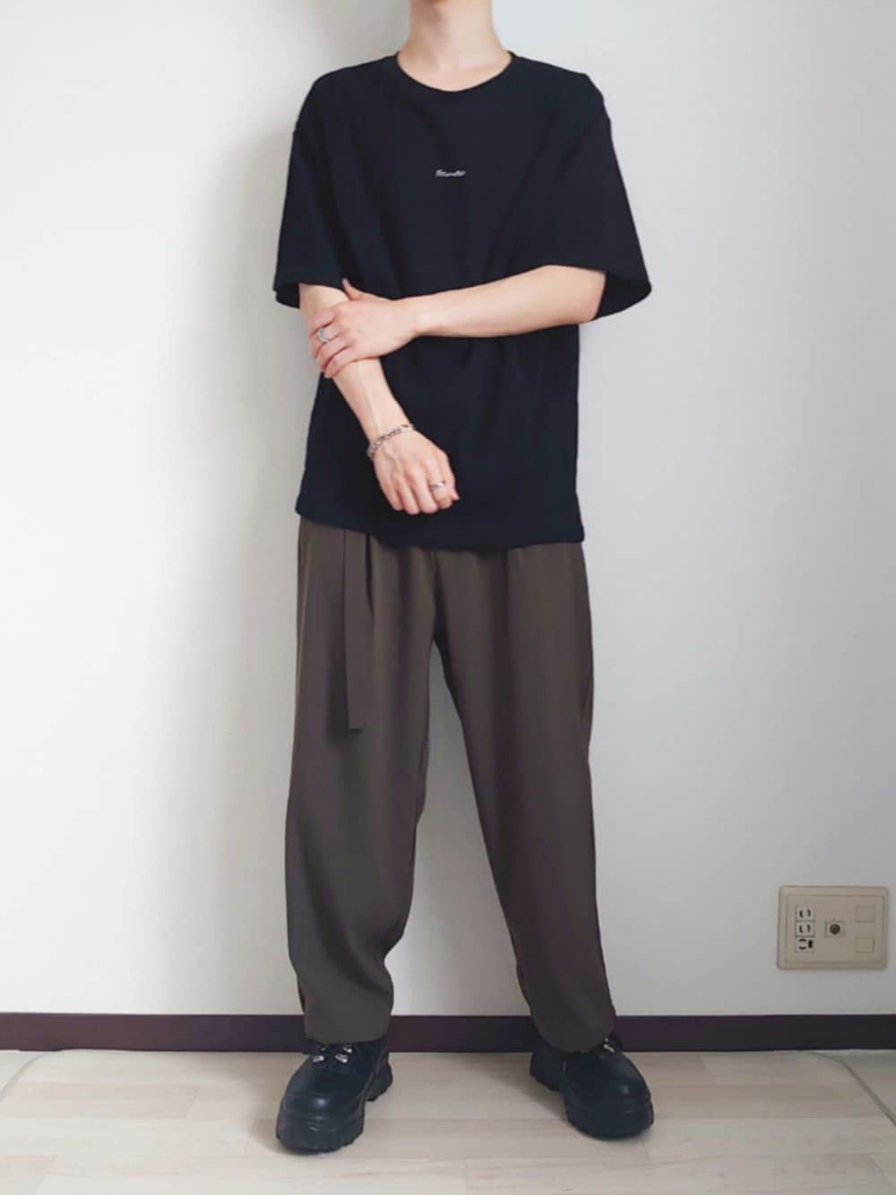 【コーデ日記】 今日はそろそろ暑くなってきたから半袖コーデ remerのロゴTにLILLのセットアップのパンツを着ました👍 パンツのシルエットがゆるめでラフ感があって最高ですわ ブラックにカーキを合わせることでオールブラックとは少し違ったクールさも出るのでオススメです ぜひ参考にしてみてください! 《お知らせ》 最近Instagramをはじめました! 僕のInstagramではWEARに載せたコーデのまとめ等を投稿しています 僕自身、学生でお金にも限りがあります😥 そんな中で自分が買った服の着回し投稿などもしているので 学生さんには参考になってもらえるかなと思います。 もし良かったらいいねやフォロー等よろしくお願いします🙇♂️