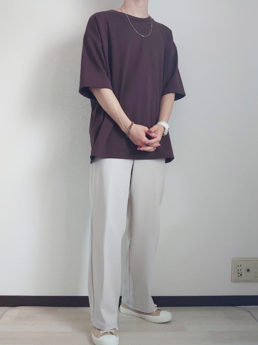 【コーデ日記】 いつも見てくださりありがとうございます! テスト期間でしばらくWEAR投稿してませんでした、、 今日のコーデはシンプルコーデ ブラウン×ベージュ×ホワイトで優しい雰囲気に🧸 スラックスにスニーカーを合わせてキレイめカジュアルにしました! ぜひ参考にしてください!✌️ 《お知らせ》 Instagramをやってます! 僕のInstagramではWEARに載せたコーデのまとめ等を投稿しています 僕自身、学生でお金にも限りがあります😥 そんな中で自分が買った服の着回し投稿などもしているので 学生さんには参考になってもらえるかなと思います。 もし良かったらいいねやフォロー等よろしくお願いします🙇♂️