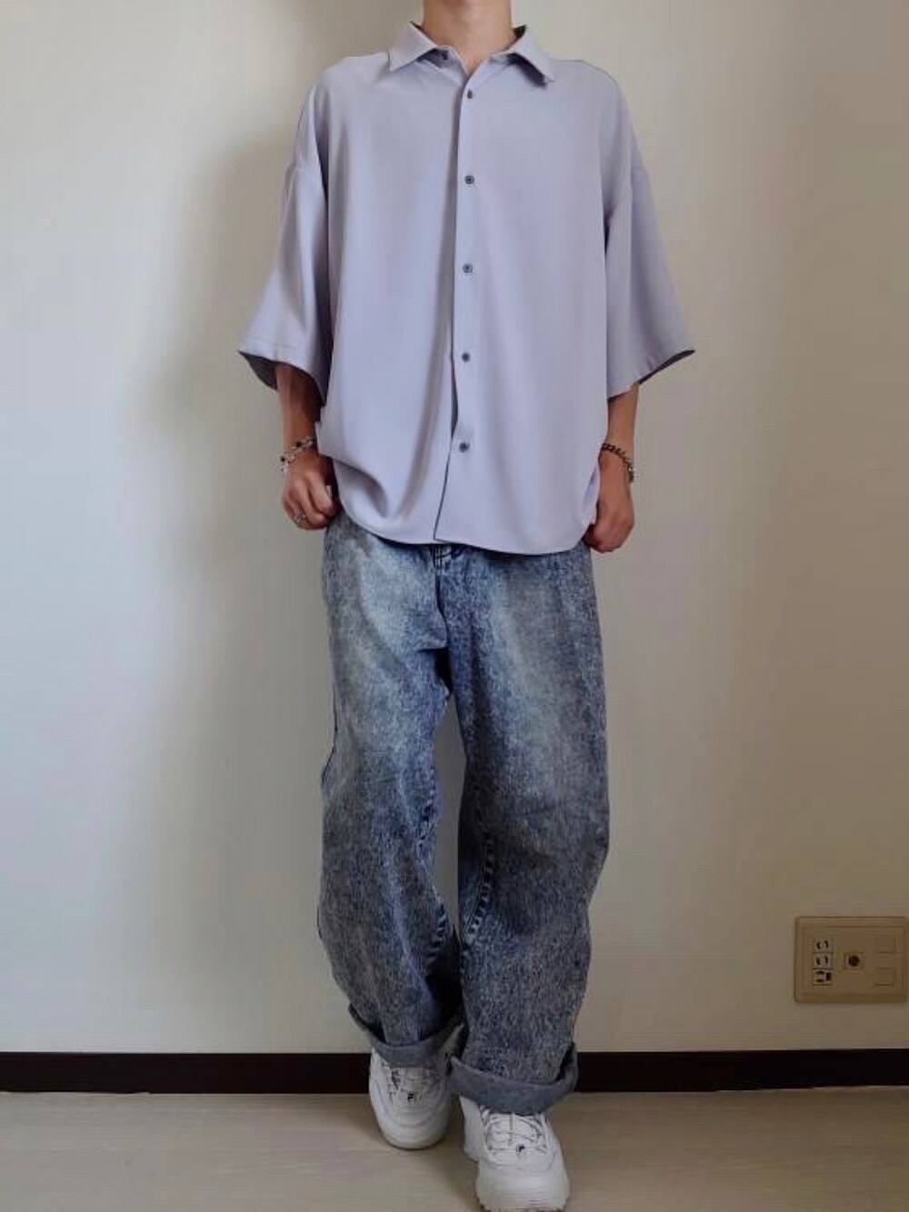 ひろきのデニムパンツ「vintage make wide tapered denim / ヴィンテージメイクワイドテーパードデニム」を使ったコーディネート
