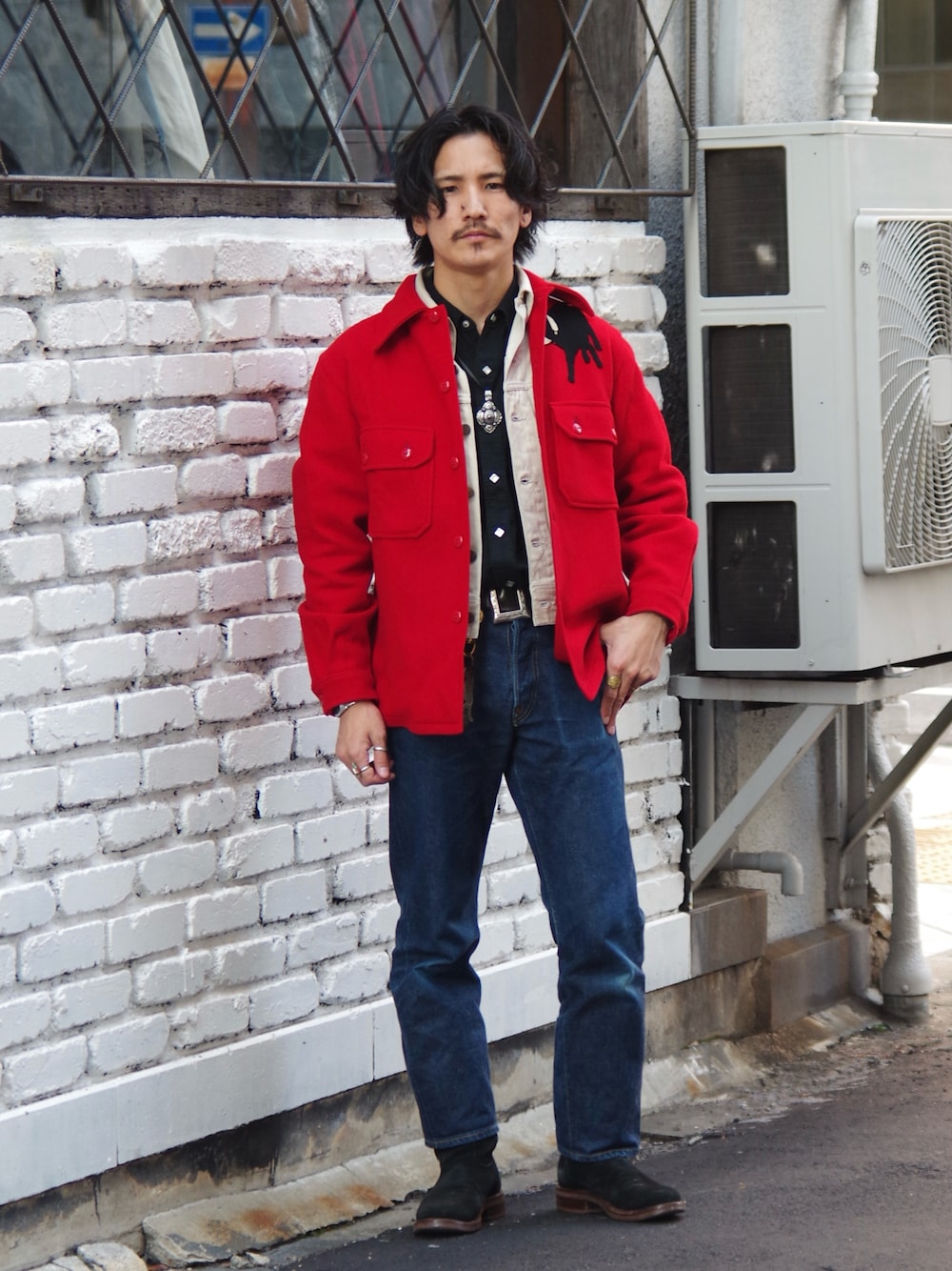 164164のデニムパンツ「Lee/リー ARCHIVES COWBOY/アーカイヴスカウボーイ 101 1945 ストレート(RAW 生デニム)」を使ったコーディネート