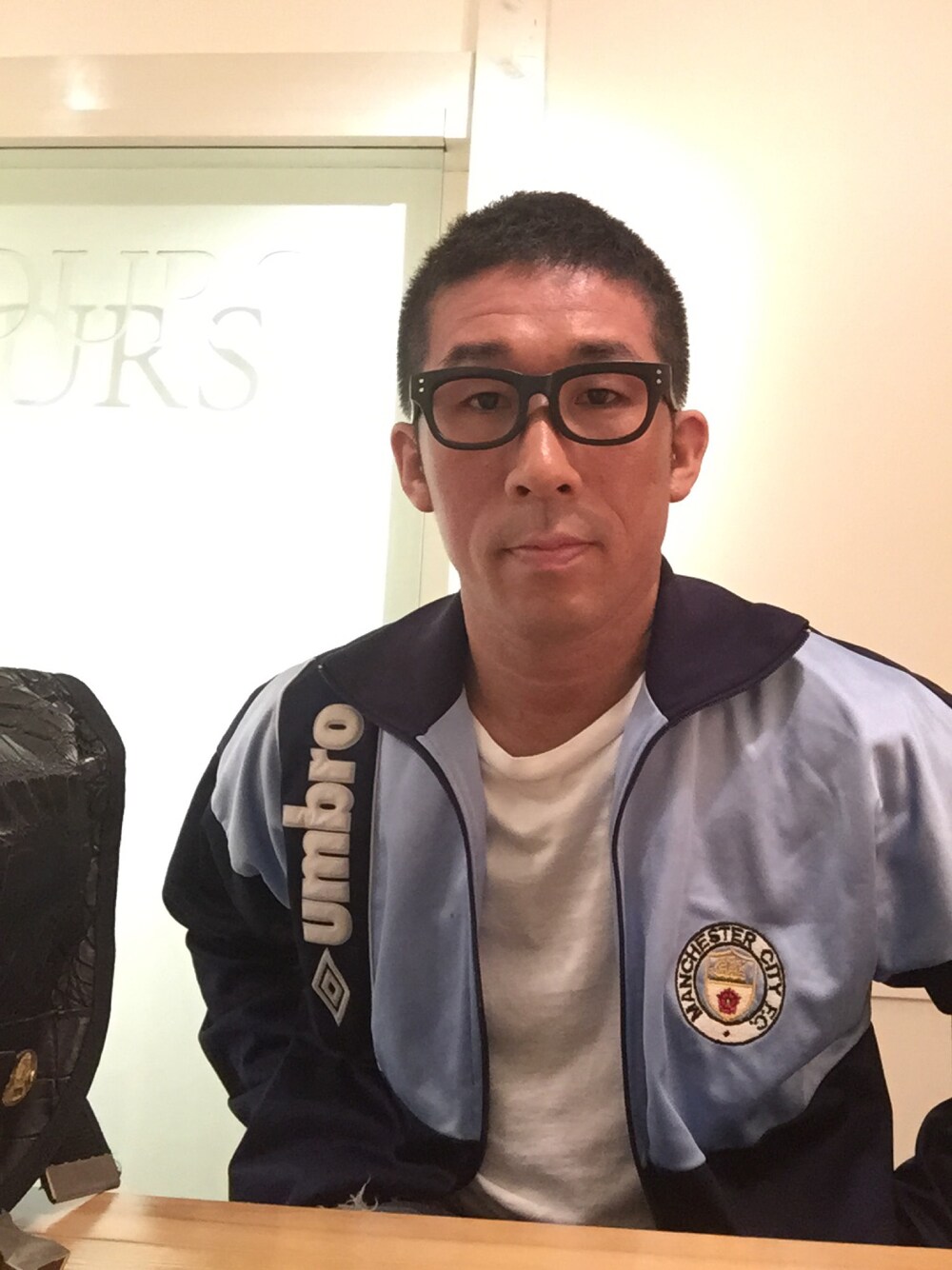 フットの後藤さんにもらったアンブロのサッカージャージ。バスケの俺からしたら掟破りのファッションですね。カフェで脳内打ち合わせ。企画進まず苦戦中。