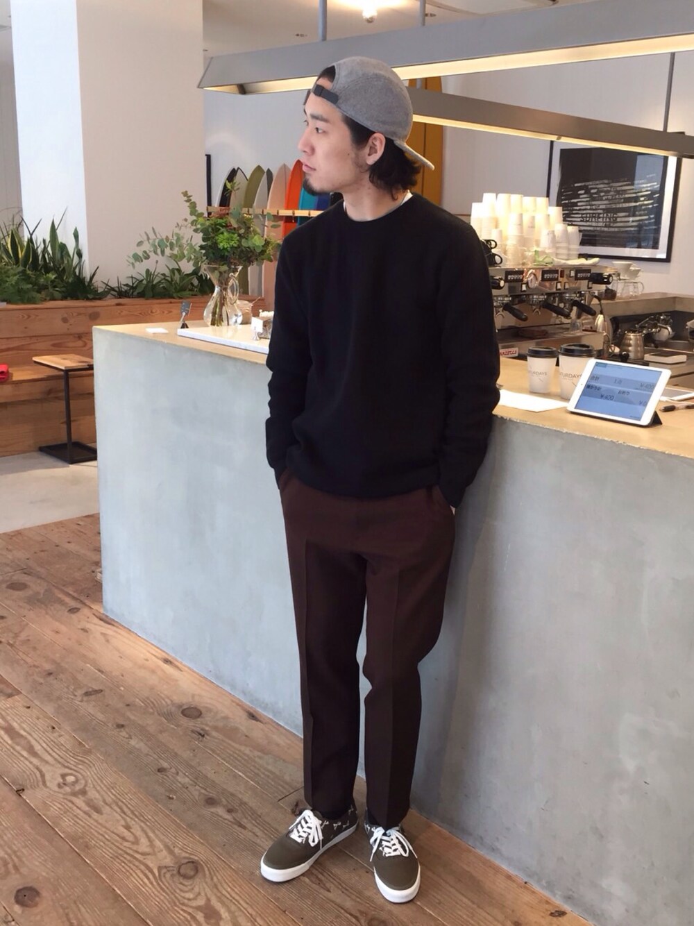 皆様、こんにちは。寒波の影響で週末は雪の予報が出ていますね。 そんな寒い日のインナーはやっぱりニットがオススメです🙋🏻 このLee Sweaterはカシミア混の上質な素材を使用しており、T-shirtの上から羽織ってもチクチクしないので非常に着やすいニットとなっており〼 デザインがシンプルなのも👌🏻 そこにSaturdays NYCらしくキャップを被り、ストリートぽさを。 サイズは少し緩めを選ぶことで、大人な余裕のある着こなしで。