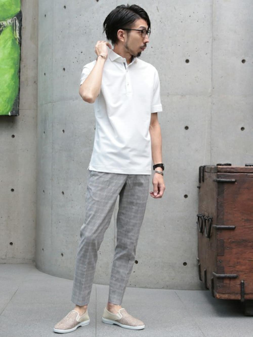 hiroshiのポロシャツ「TCデニムニットホリゾンタルカラーポロ」を使ったコーディネート