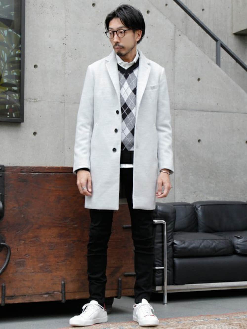 hiroshiのチェスターコート「ポリエステルメルトンチェスターフィールドコート」を使ったコーディネート