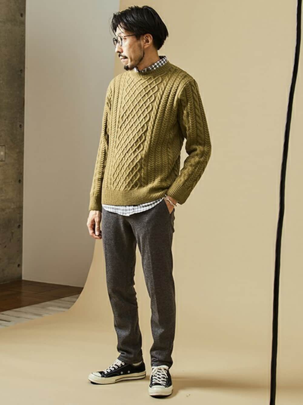 hiroshi(MEN'SMELROSE HEAD OFFICE(SHOP STAFF))のニット/セーター「洗えるクルーネックアランニット」を使ったコーディネート