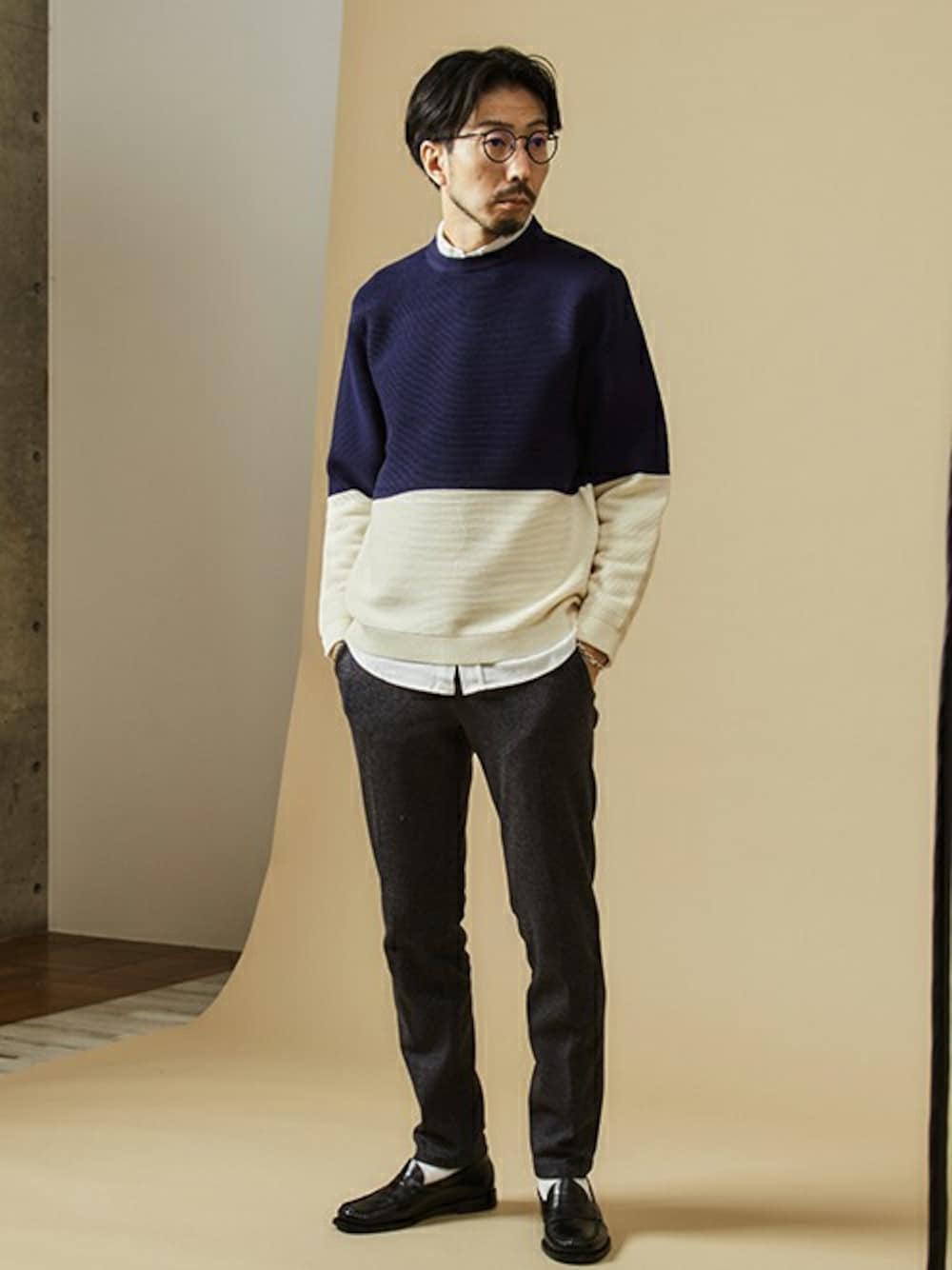 hiroshi(MEN'SMELROSE HEAD OFFICE(SHOP STAFF))のニット/セーター「ガーターバイ編みカラーオーバーサイズニット」を使ったコーディネート
