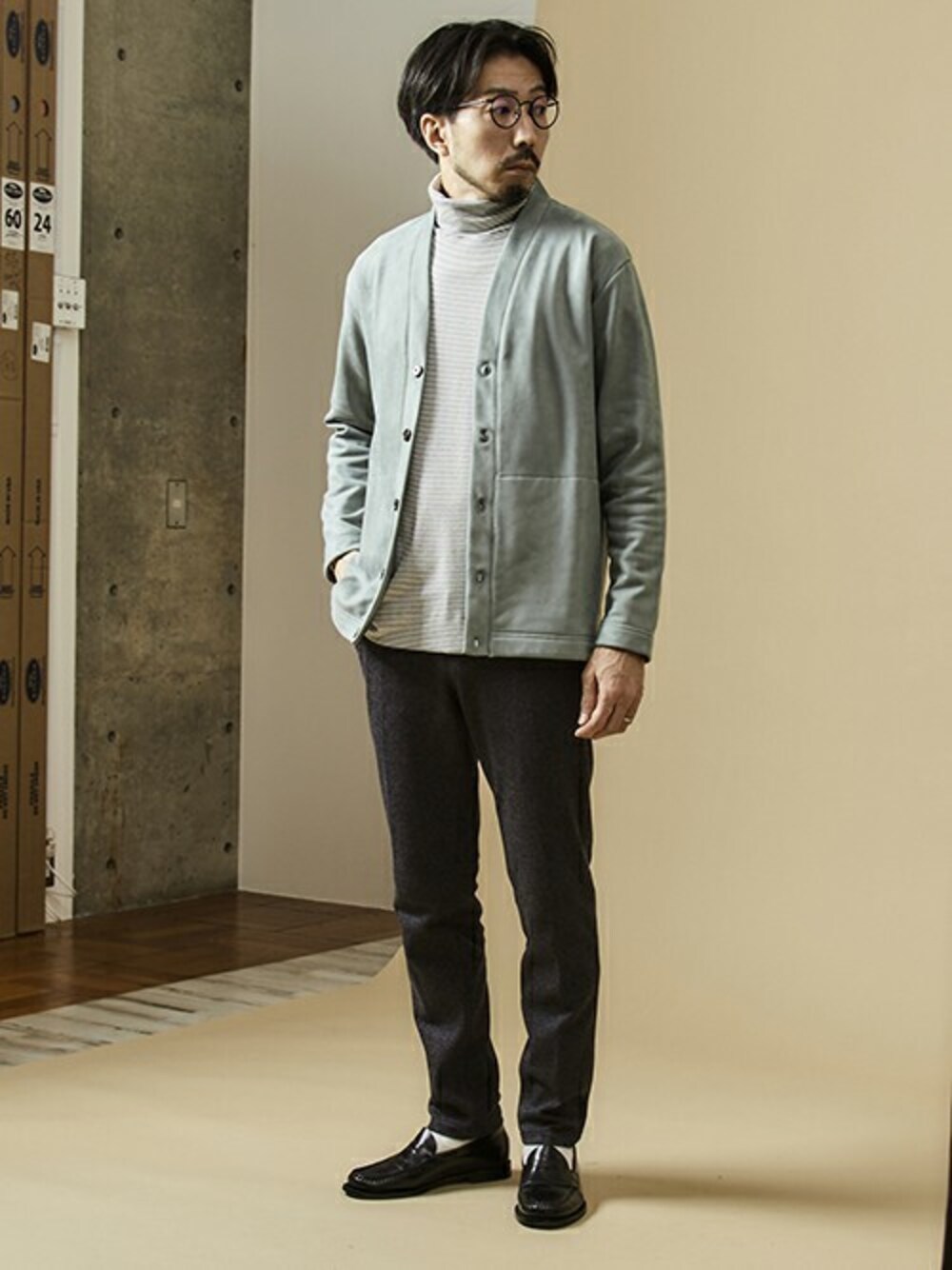 hiroshi(MEN'SMELROSE HEAD OFFICE(SHOP STAFF))のカーディガン/ボレロ「フェイクスウェードカーデ」を使ったコーディネート