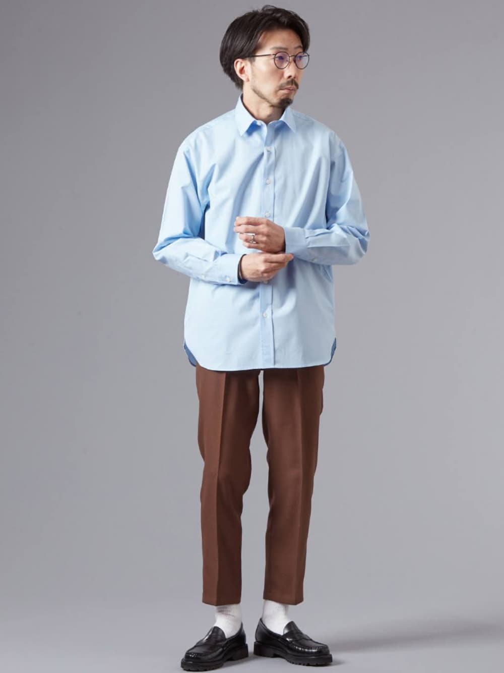 hitoyoshi製 thomasmason のシャツは軽やかで着心地最高です。 テーパードパンツの色をシックにすると高級感のある仕上がりになります。
