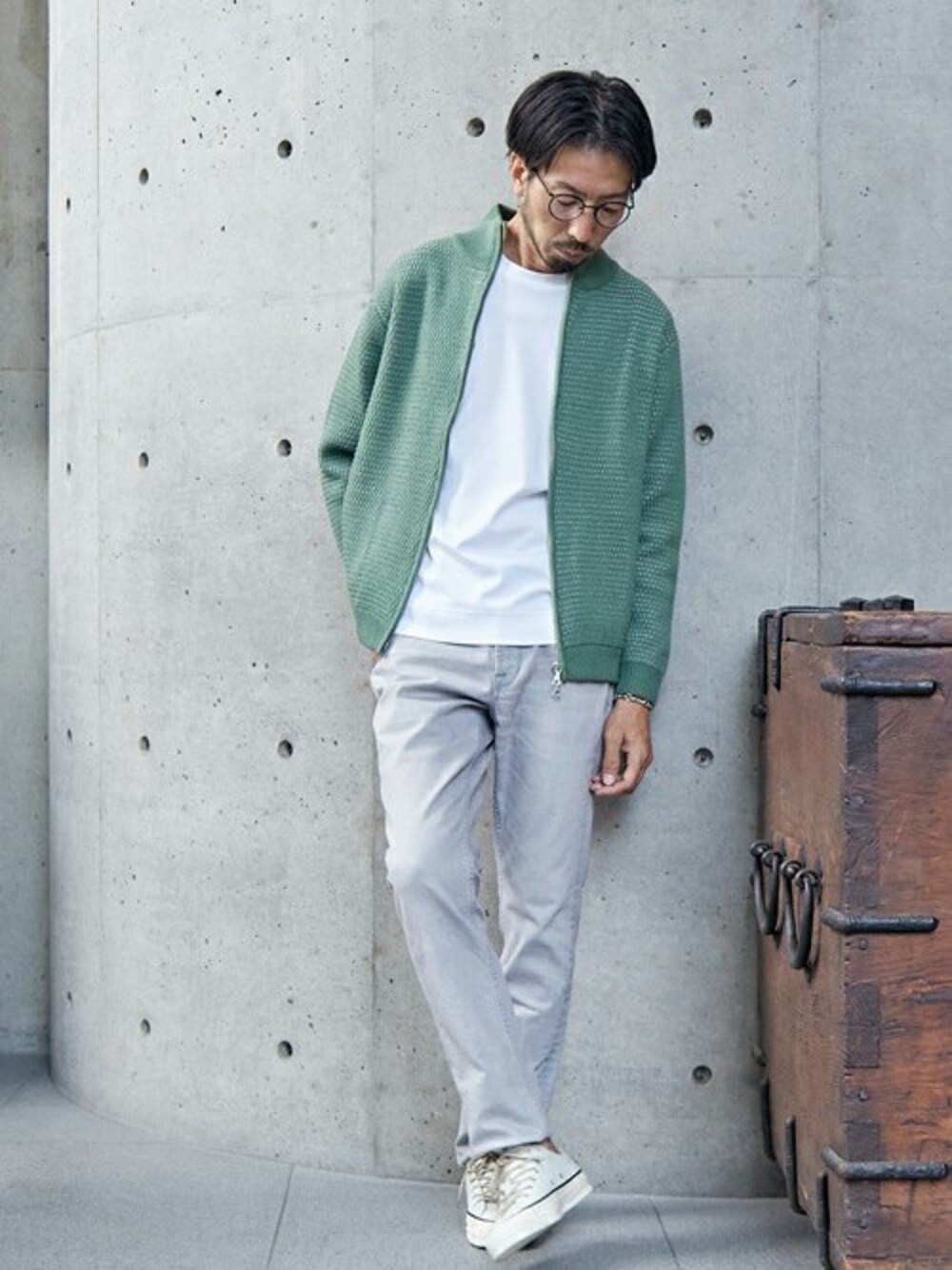 ツートンで表現された編地が上品な印象のジップアップニット。ダブルファスナー使いで着こなしの幅もひろがります。 デニムパンツとあわせて大人のリラックスカジュアルスタイルを楽しんで!