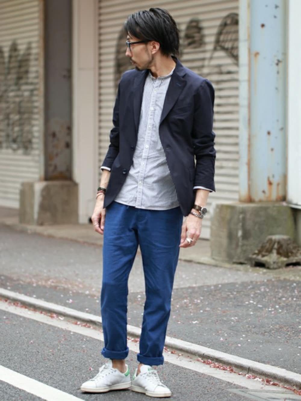 hiroshiのテーラードジャケット「マシーンウォッシュ可能COOL DOTSトラベラージャケット」を使ったコーディネート