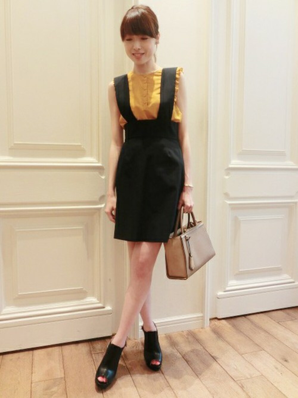 今スグ着れる秋の新作で、次の季節を先取り☆サスペンダーを取り外せる膝丈スカートは、秋まで色々なコーディネイトが楽しめそう。バッグはショップでも大人気なのでお早めに・・・!