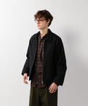 ブラックのギャバショートブルゾンとスラックスはセットアップ。UNUSEDのボーダーカットソーとNIKE AIRMAX96Ⅱを合わせて、ブラック×ホワイトで統一。鮮やかなオレンジのダウンジャケットと、anelloのボア素材のミニショルダーをアクセントにしました。