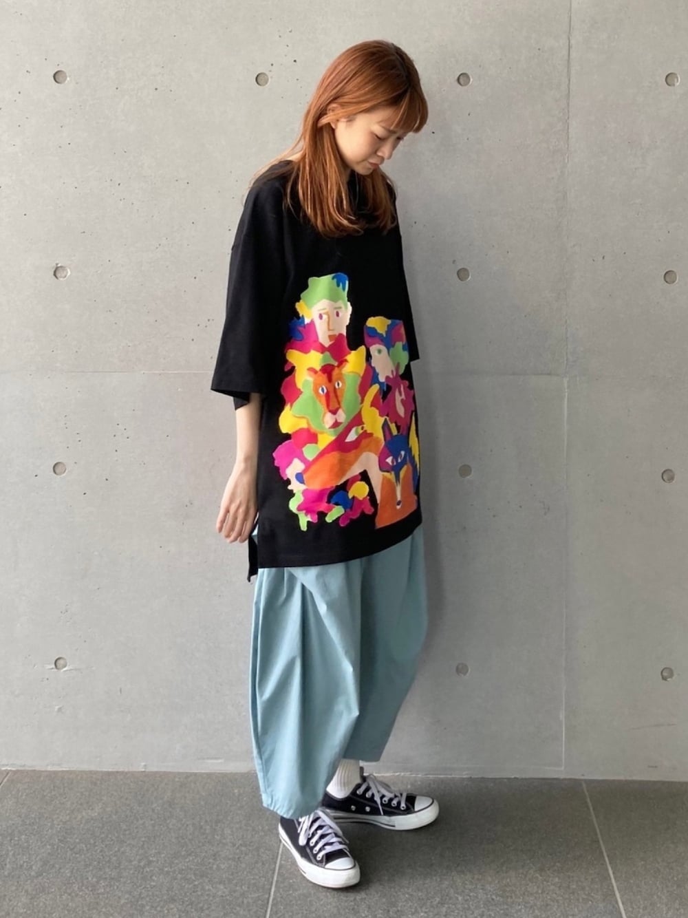 「サクラクレパス」とイラストレーター「田室綾乃さん」とのトリプルコラボ。 こちらはユニセックスのビッグTです。 インパクト大なイラストが良いですね◎ フラボアならではのデザインパンツとゆるっと合わせて着て下さい♪