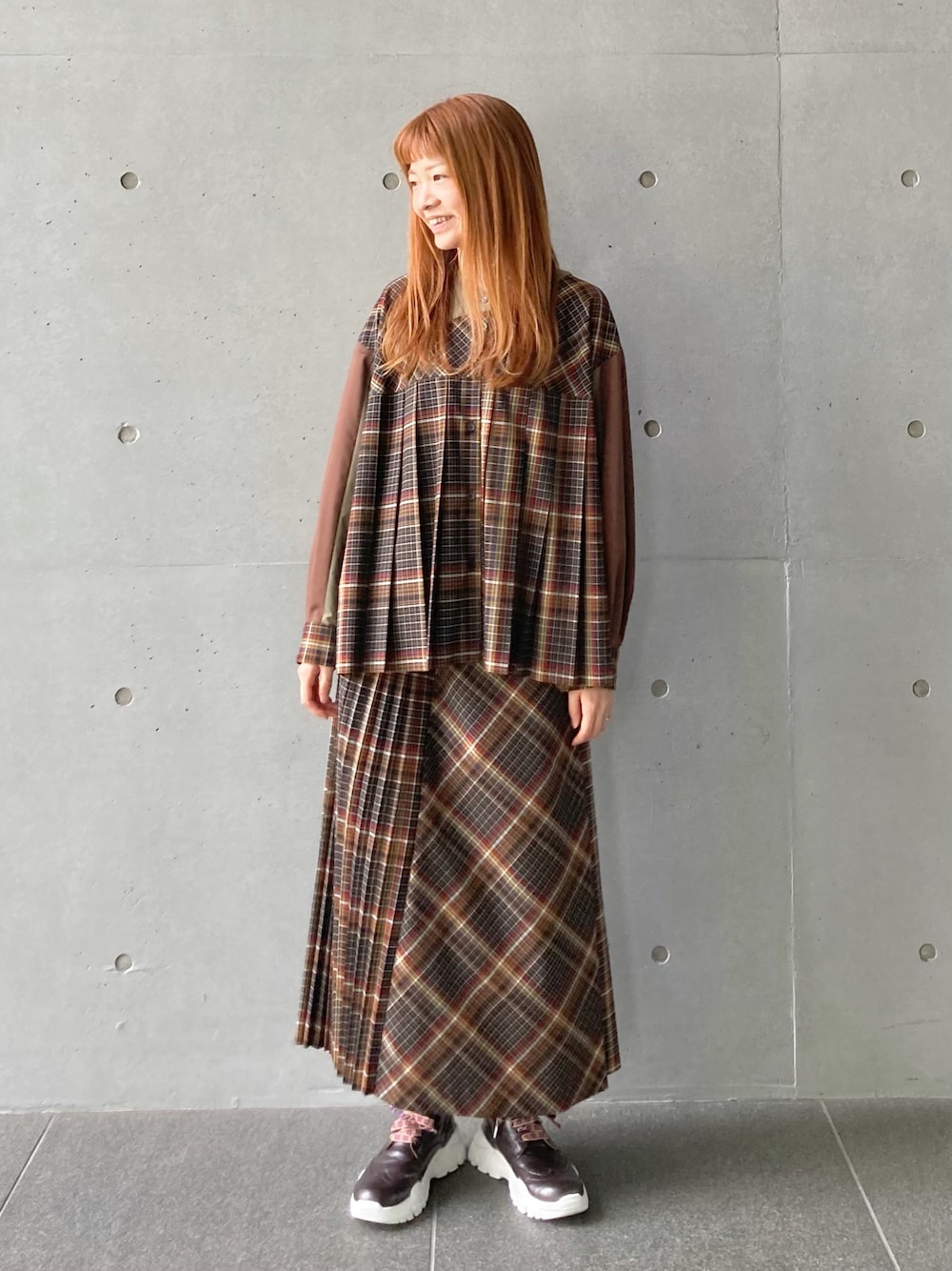 hirotaのスカート「T/Rチェック スカート」を使ったコーディネート