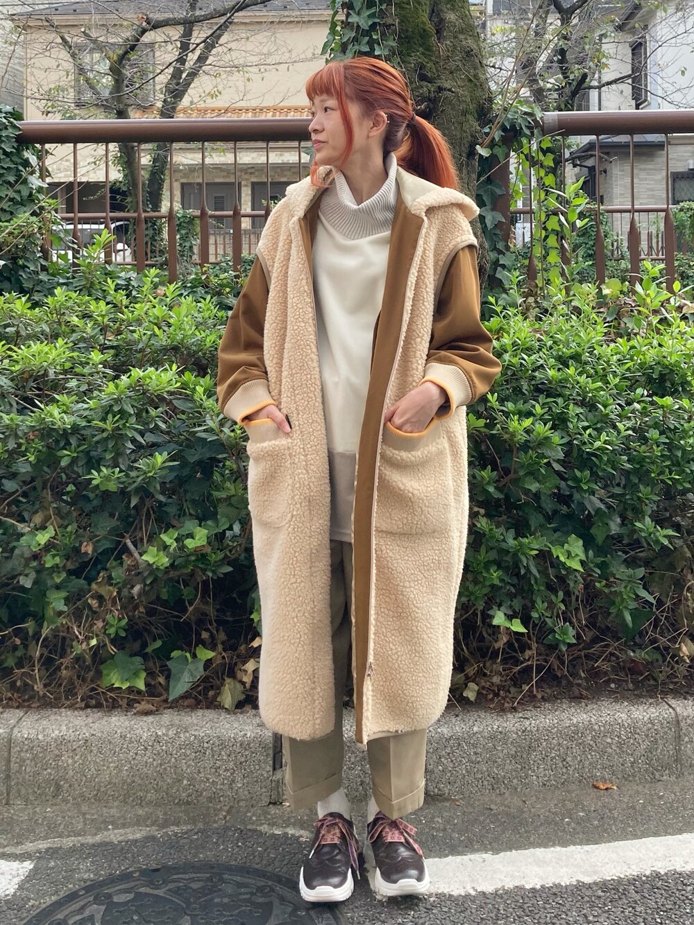 本日はボアのロングコートをご紹介します! 冬はモコモコのボアアウターも可愛くて良いですよね。 ロングですが、軽くて暖かです。 ゆったりシルエットなのでニットなども着込んでいただけます。 袖が取り外しできる仕様になっていて、今時期だと外してきていただくのも可愛くてオススメです!