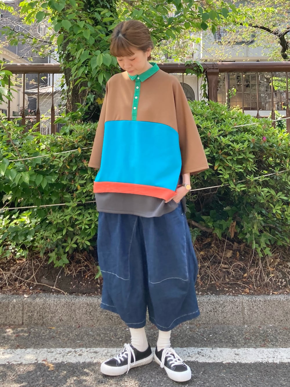 カラフルな配色が目を引くデザインカットソー。 衿部分に、厚めのツイルを使うことでマニッシュなラガーシャツのような雰囲気も出しています。 ツルっとしたしなやかな肌触りの素材なので、着心地も抜群です。 デニム合わせもカジュアルになりすぎず、オススメです。