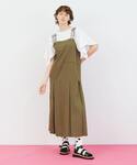 丈夫な素材でできたジャンパースカートを着ました。 インナーにサテン生地のブラウスを入れて大人っぽいイメージに。 左右で異なるプリーツが施されているので、見る角度によって違う表情を楽しめます!