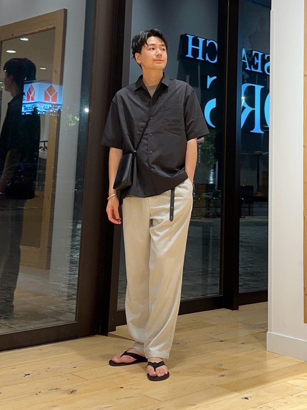 機能性シャツを使ったコーデ このシャツは通気性抜群なので これからの季節に大活躍間違いなしです🔥 ボタンがスナップボタンなので ほどよくカジュアルに落とし込めます☺️ ぜひ店頭でご覧ください!!
