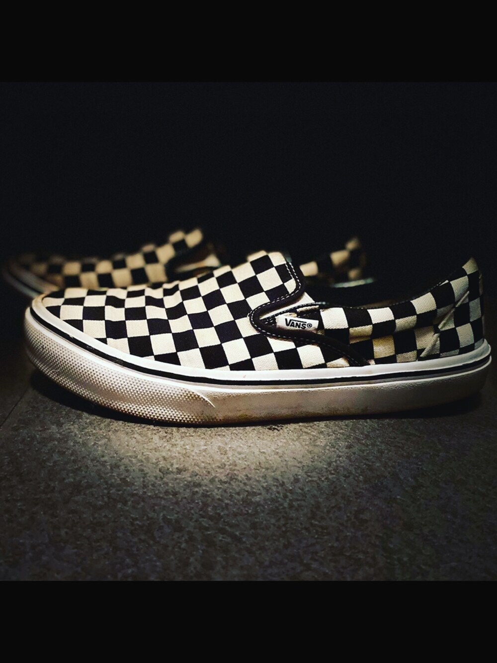 こんばんは! 投稿がいいと思ったら いいねとフォローよろしくお願いします🙇♂️ いつも愛用してるチェックのスリッポンタイプのバンズです! ストリート寄りの格好をする時は本当に助けられます! 味を出したいのでわざと洗ってません。 ※汚いと思われた方はすいません🙇♂️ 一足は持っておいて損はないですね👍