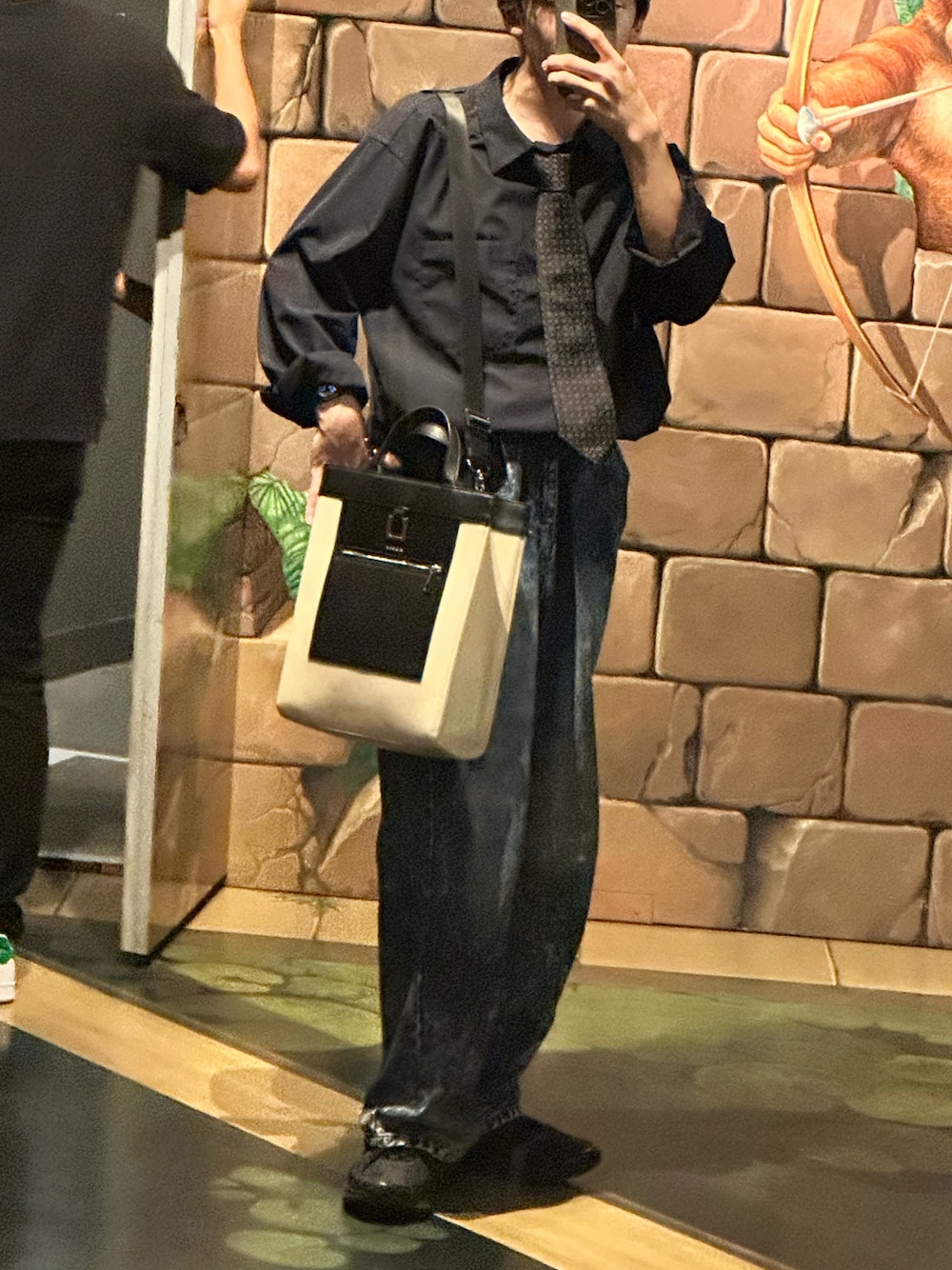 夏が終わりつつありアパレルはAWに向かう今日この頃…せっかくなので長袖をおろしつつ、はじめてのネクタイを使ったコーデに挑戦してみました! シャツはGU ネクタイはAD̷RER デニムもAD̷RER バッグもAD̷RER シューズはNIKEのAIR MAX dn です! シャツやネクタイが比較的シンプルなので着方で癖を出そうと考え、軽く捲りタックインしました!また、ADRERのケミカルウォッシュデニムでカジュアルさをいれつつ、同じくAD̷RERの2wayトートできれいめ要素をいれて上手くバランスをとっています! 改めて思うけどこのAD̷RERの2wayトート素晴らしいなと思いました、正面にでかでかとレザー生地があることでパッと見キレイめ要素がとても強く見えますが、全体のボディを構成しているのはキャンバス生地であるためカジュアル要素も含んでおり、バッグ単体でカジュアルとキレイめの絶妙なバランスを見事に抑えている…荷物が少ない時はいつもこのバッグ一択といってもいいほど愛用しています AD̷RERリニューアルオープンのアイテムも楽しみです