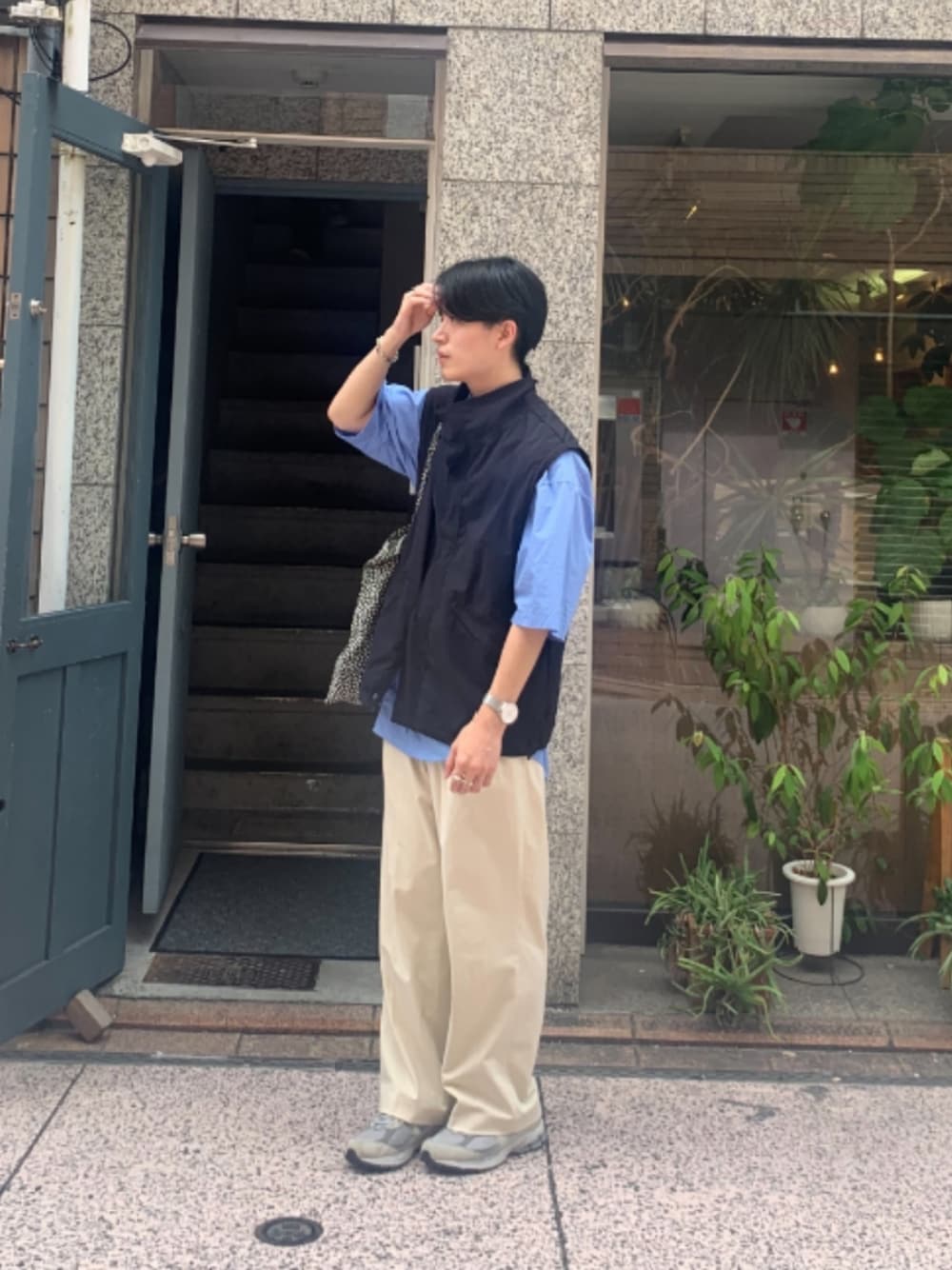 爽やかコーデ🍃 パンツはUNIQLOのタックワイドパンツ バッグはHAYのトートバッグ