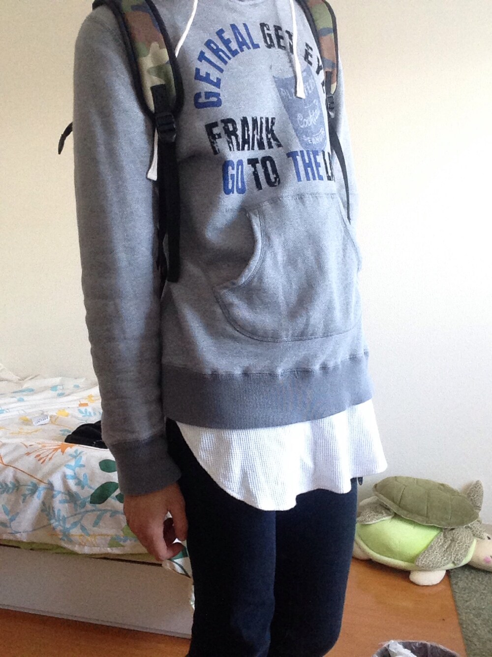 撮り置き二投目! オフスタイル! ロングのシャツと古着のプルオーバー! 足元黒統一!