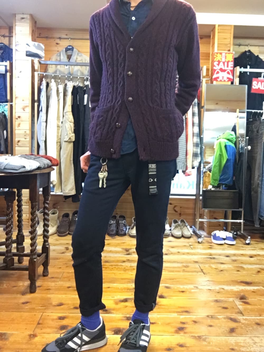 秀明のニット/セーター「AWケーブルショールカーデ/552967」を使ったコーディネート