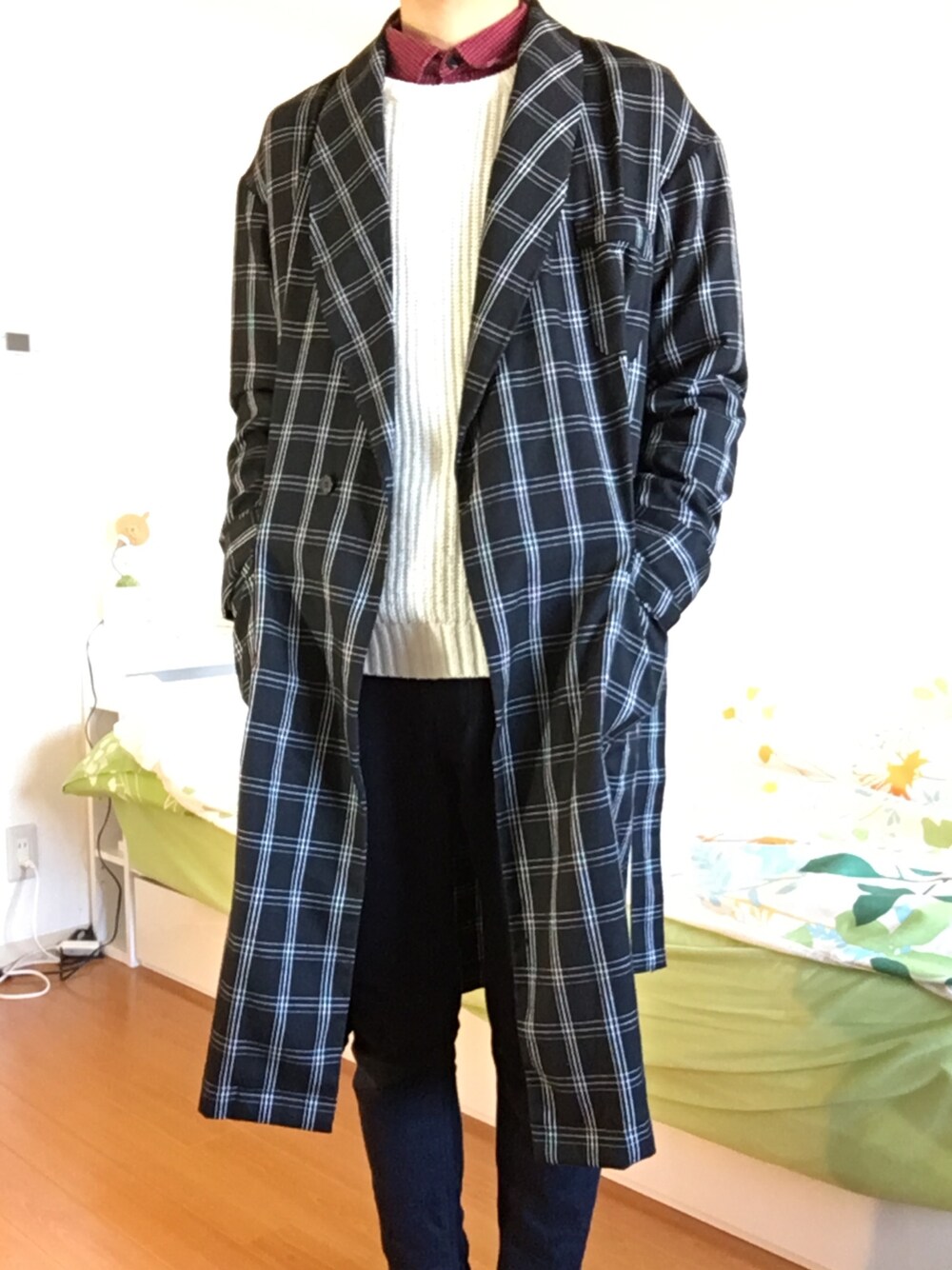 秀明のチェスターコート「チェックガウン(HARE)」を使ったコーディネート