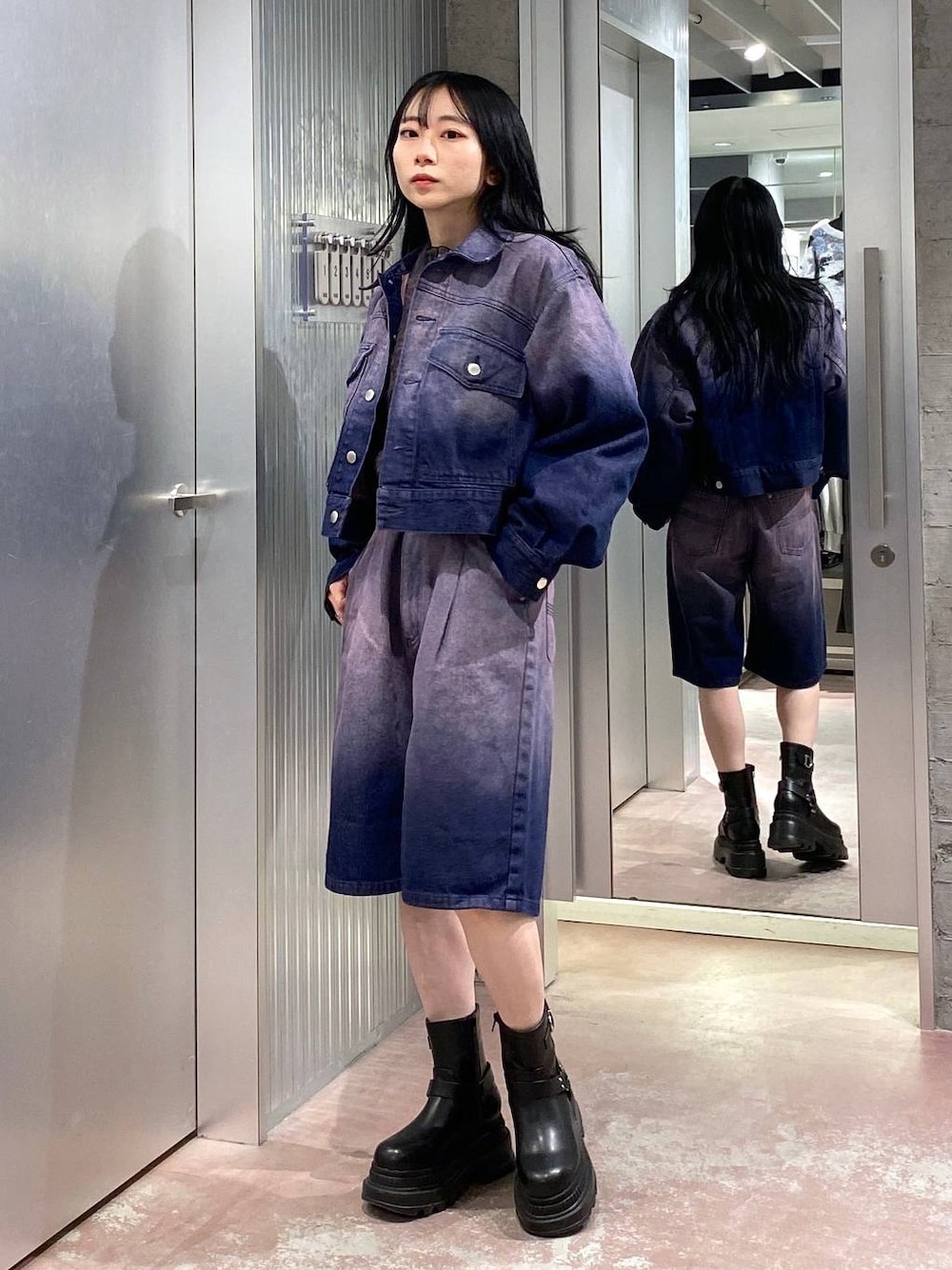 □1月販売開始デニムセットアップ! 12オンスで通年着やすい厚みの生地を使用 グラデーション加工デザインがモードな印象でポイントに 加工が特徴的なため、シンプルで着やすいシルエットに作成 ジャケットは厚めのインナーを着てもごわつかない緩めのサイズ感、着丈はやや短めの設定で、カジュアルになり過ぎないのが特徴!
