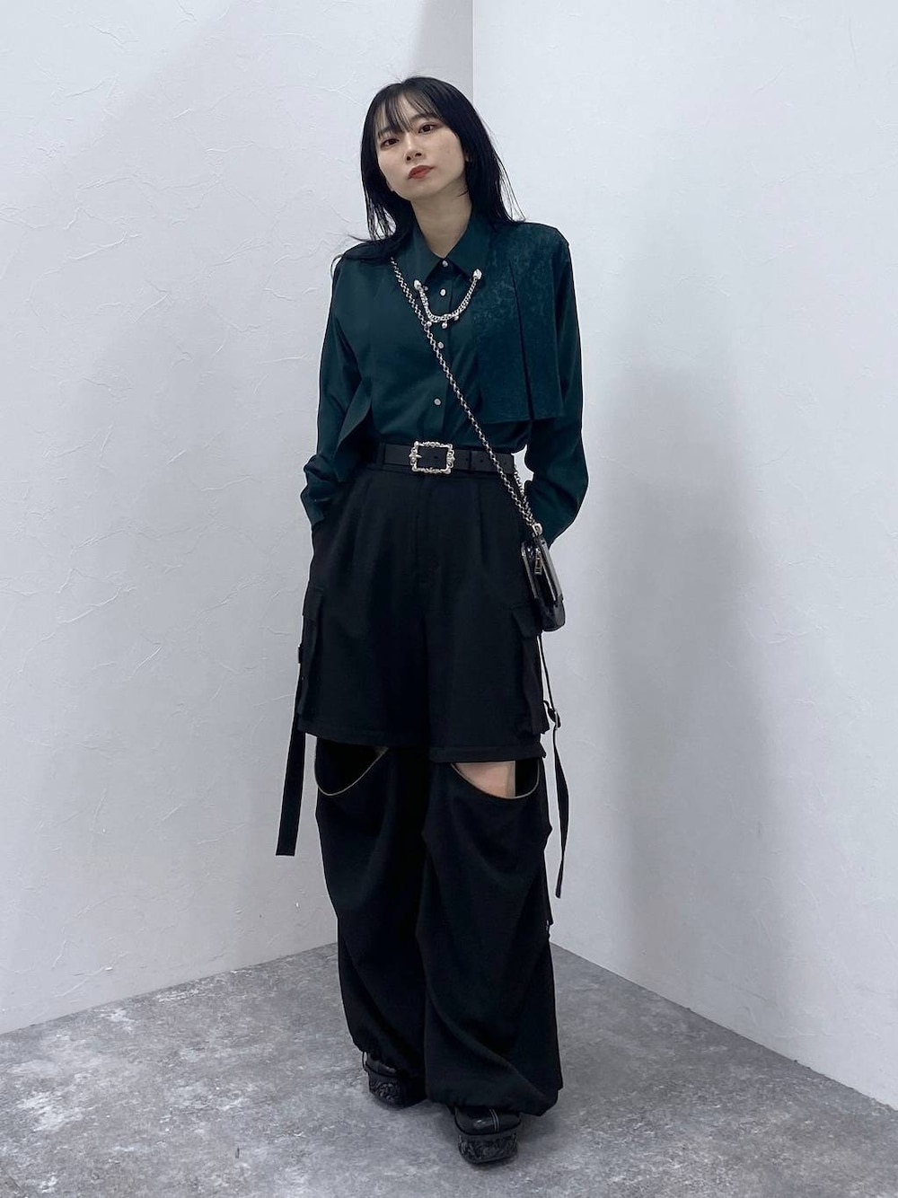 hisa(HARE 京都ポルタ)のカーゴパンツ「2WAYメタルカーゴパンツ(HARE)」を使ったコーディネート