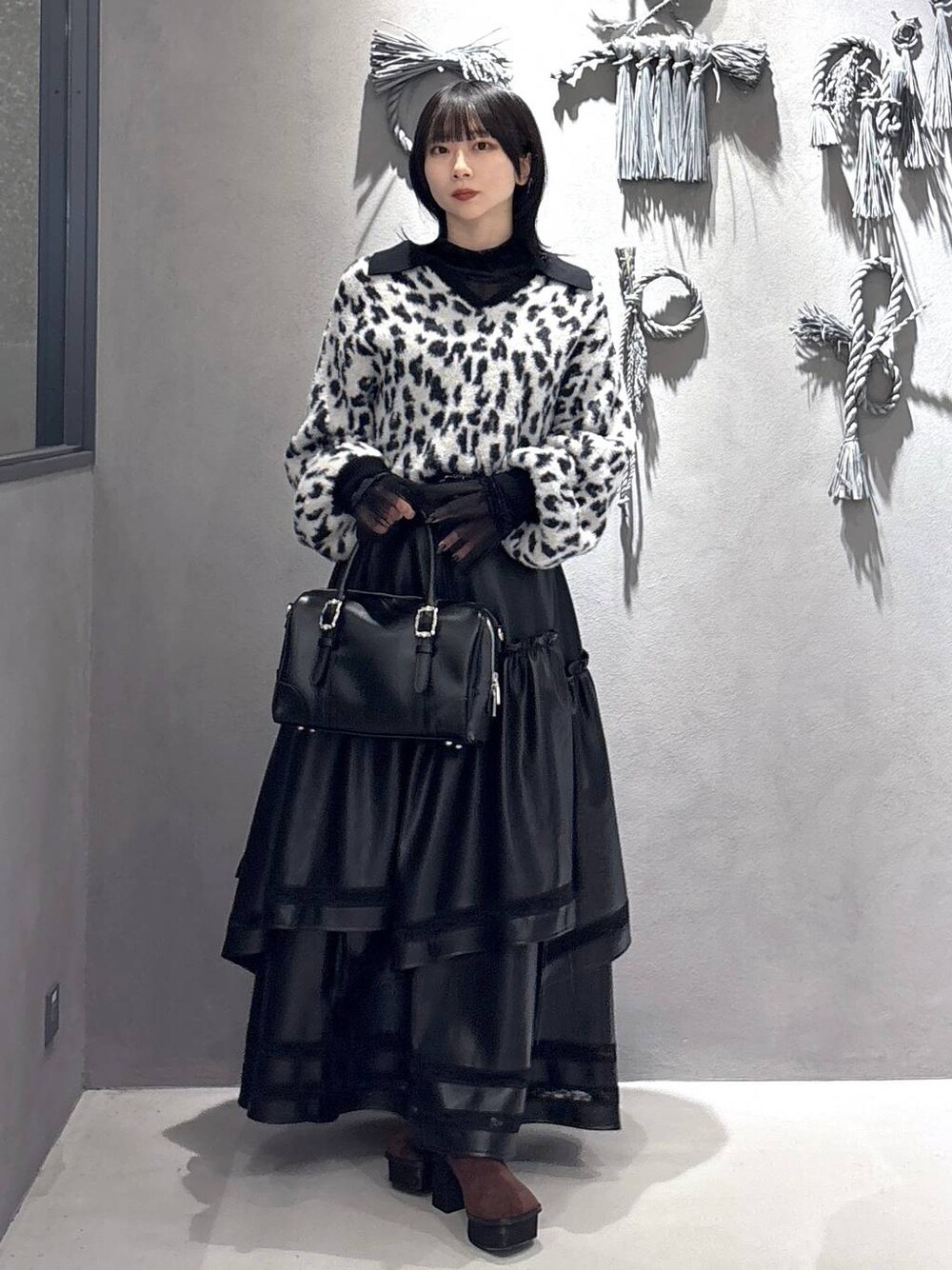 □スカート 斜めギャザーが入ることで立体感が生まれ、1枚で主役級のスカートに! 後ろはゴム仕様で楽に着用できます! 程よく広がるAラインで体型カバーできるデザインで、 裾のレースは透け感があり重くなりすぎない為、抜け感のあるスタイルに◎ □ニット ショートすぎずオーバーすぎない、ややコンパクトなサイズ感でシルエットもスッキリ! トレンドのポロ型の為、1枚でもインナーとしても着れます! ショートシャギーですっきり見えしつつ、ふわふわと肌触りが良い◎ もっちりとした生地で着心地◎