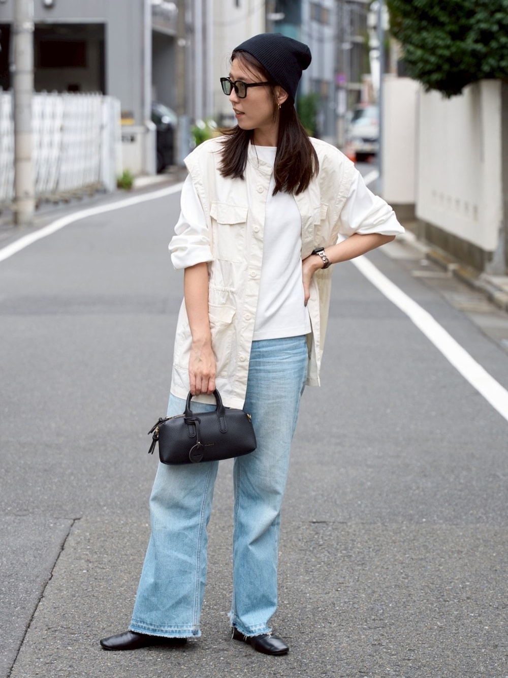 ボートネックにベストが大人カジュアルに最適◎ 丈もだけど、レイヤードもちょうどいい💞 着回せるお気に入りシルエット。 Instagram @hisa_days