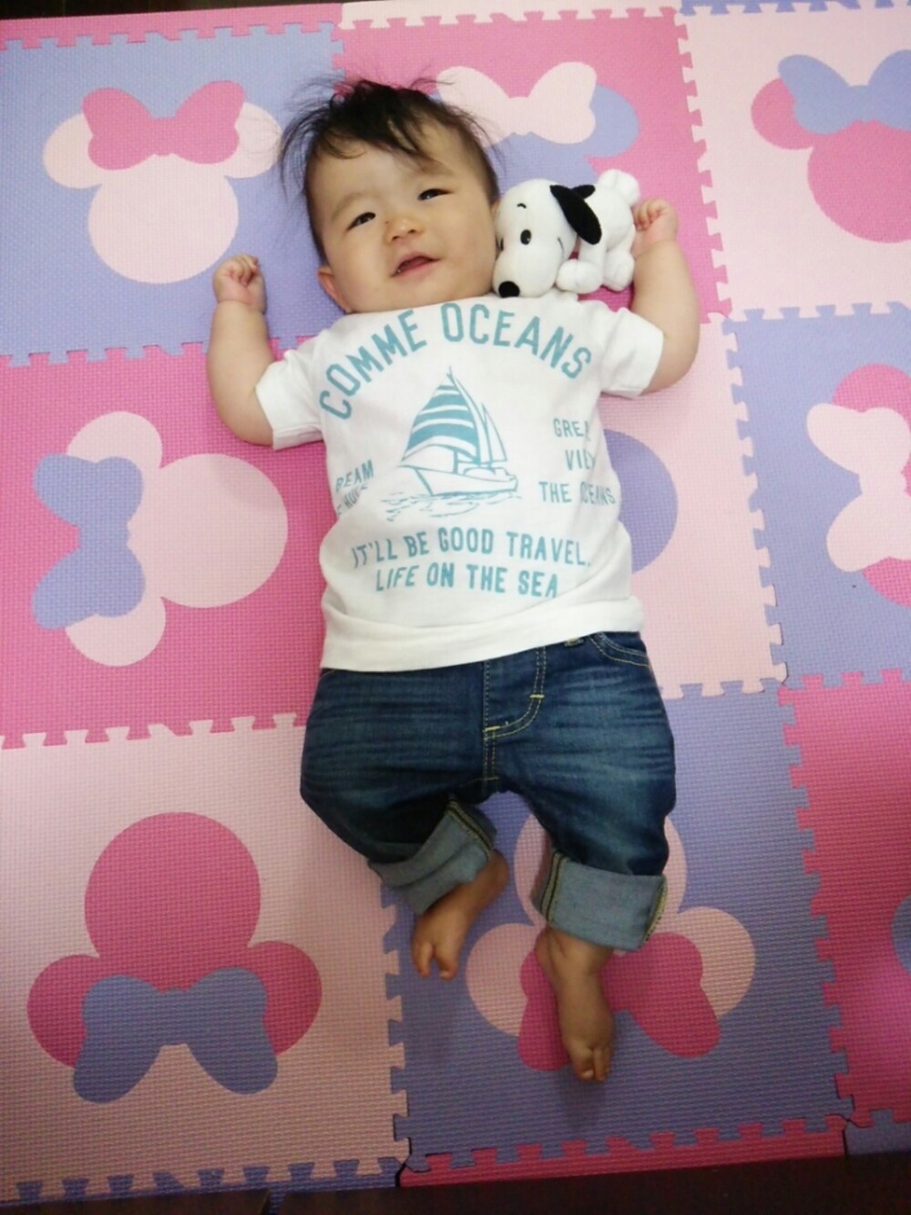 今日は朝からオラフが行方不明に…(ФωФ) スヌーピーと遊ぶも 途中で離乳食用のイスを発見してスヌーピー捨てられてます😂💦 夏っぽいTシャツにLeeのデニム合わせてみました🌴✨足が短くて二回ロールアップを…( ̄▽ ̄;)