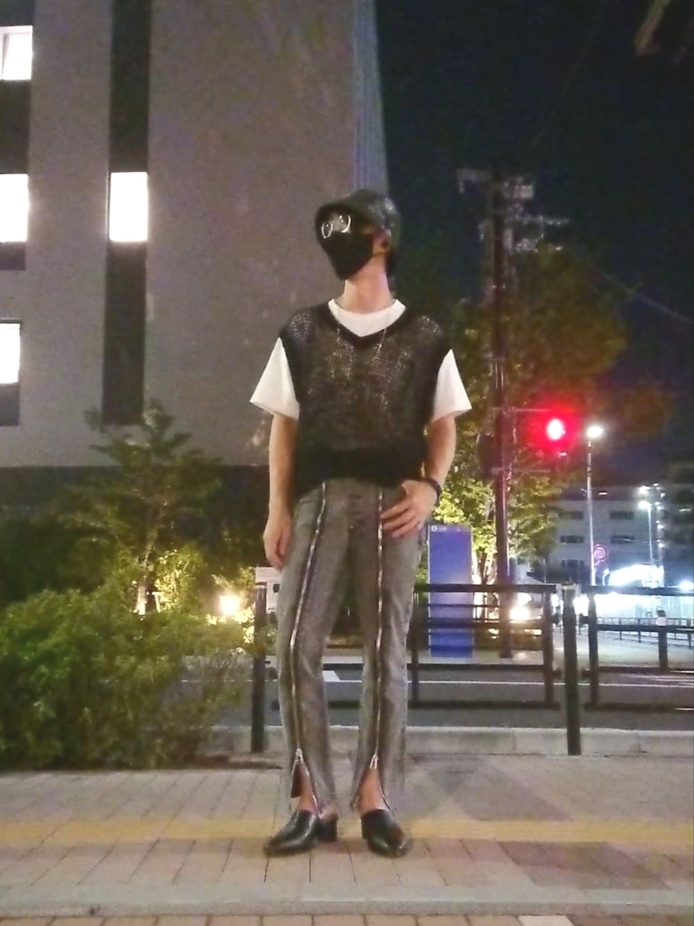 蒸し暑い… 夜でも不快だけど薄着ならなんとか。 デニムに白Tタックインだけじゃ寂しいからベスト。 メッシュだと透けてよい。 バケットハットがタグだったけどハンチングかどっちかはだいたい被ってる。