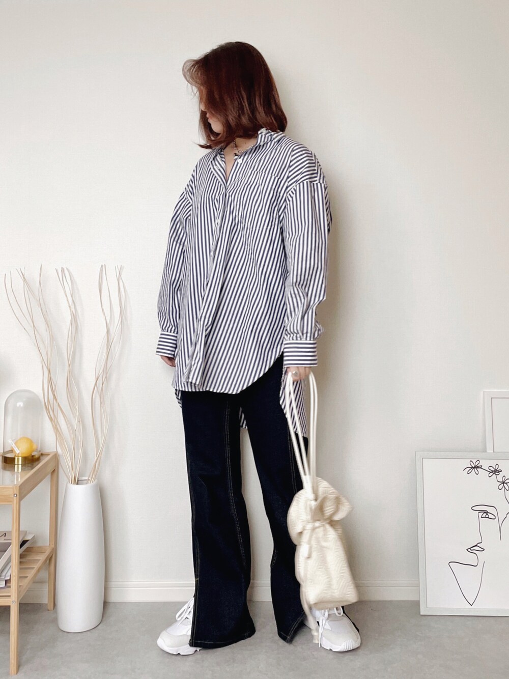 ひぃちゃんのデニムパンツ「【apretro】スリットデニムパンツ〈セミフレア/ベルボトム〉」を使ったコーディネート