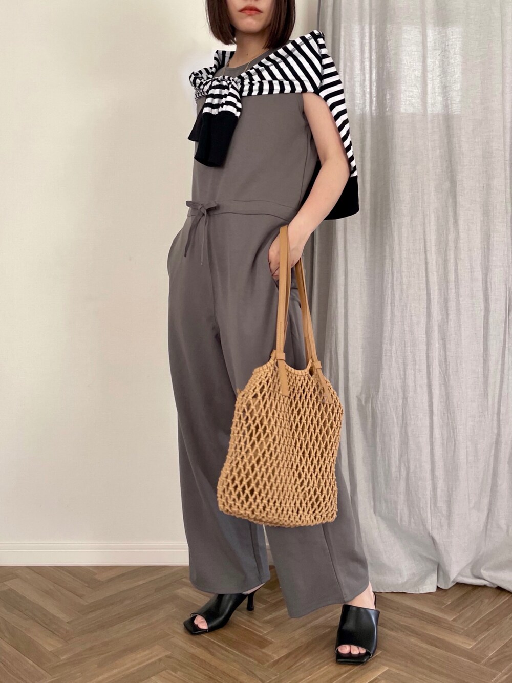 ひぃちゃんのトートバッグ「洗える巾着付きマクラメバッグ/930386」を使ったコーディネート