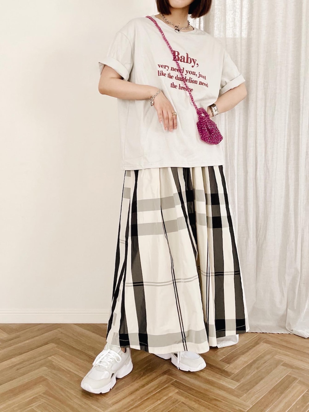 ひぃちゃんのスカート「チェックボリュームフレアスカート」を使ったコーディネート