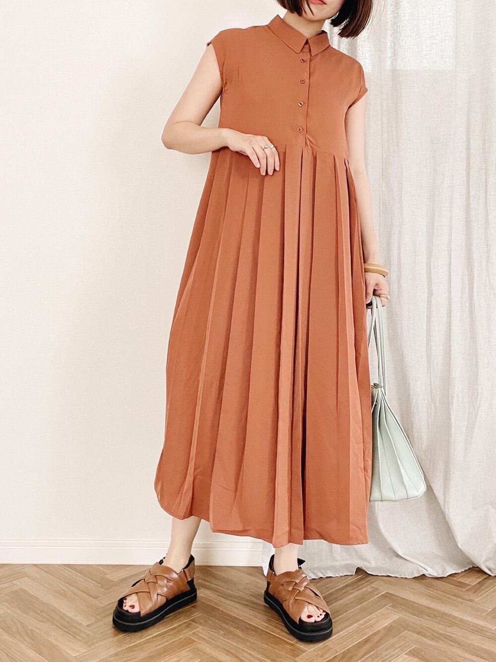 ひぃちゃんのワンピース「プリーツ切り替えワンピース」を使ったコーディネート